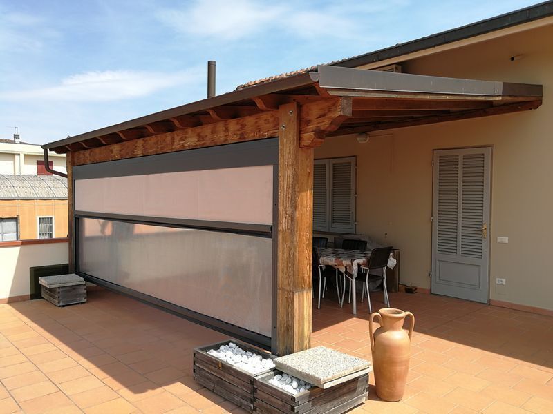 Le tende ermetiche a caduta in pvc cristal sono strategiche col sopraggiungere del freddo e delle intemperie per la copertura dei porticati, dei balconi e degli spazi laterali delle tettoie. Creano un'ambiente completamento ermetico grazie alla cerniera presente nel telo e nelle guide che elimina ogni possibilità di spifferi d'aria.