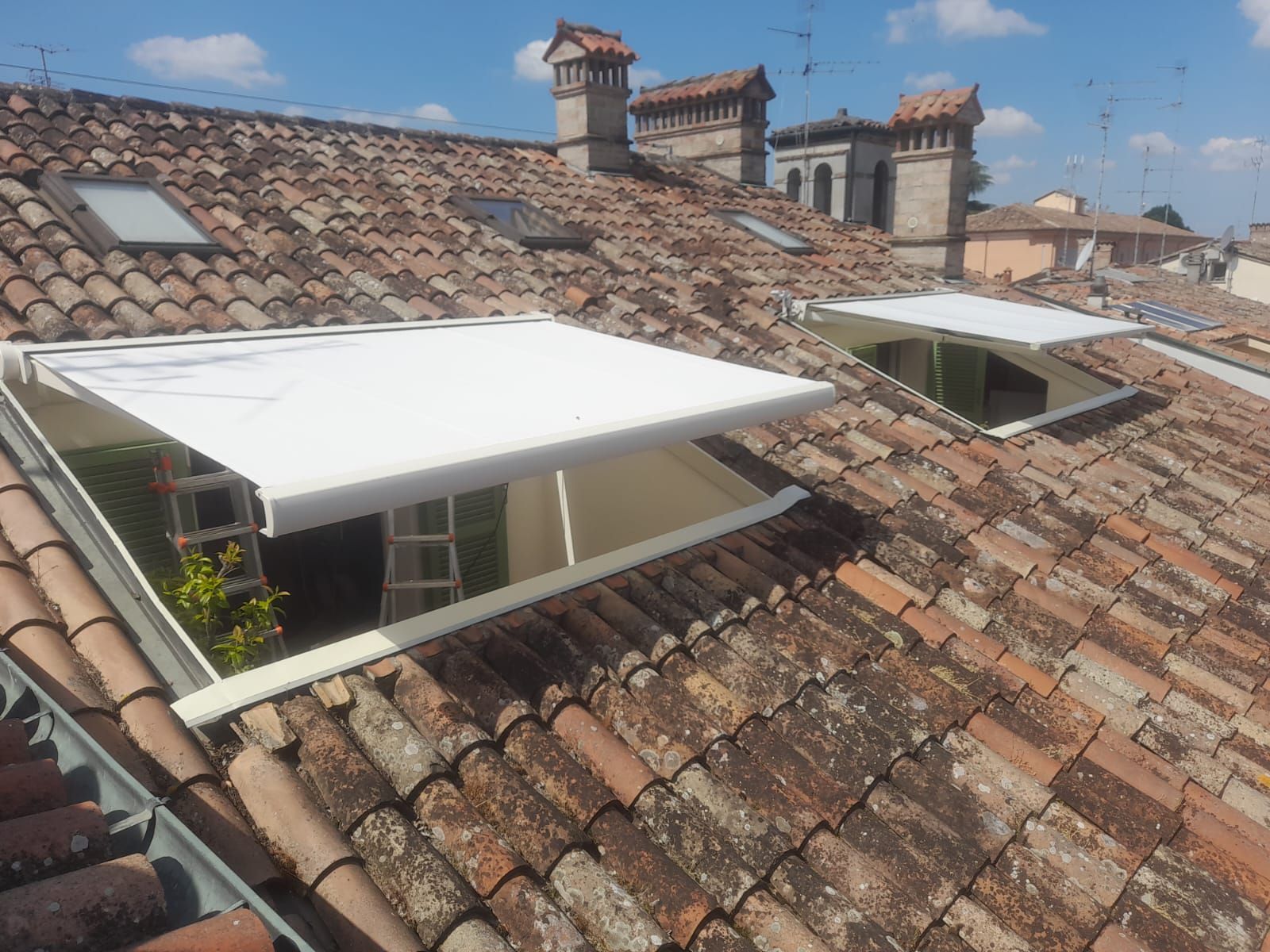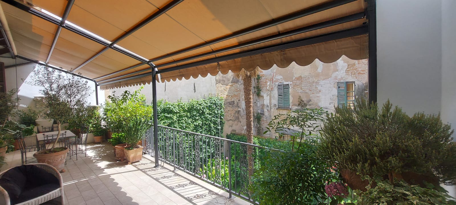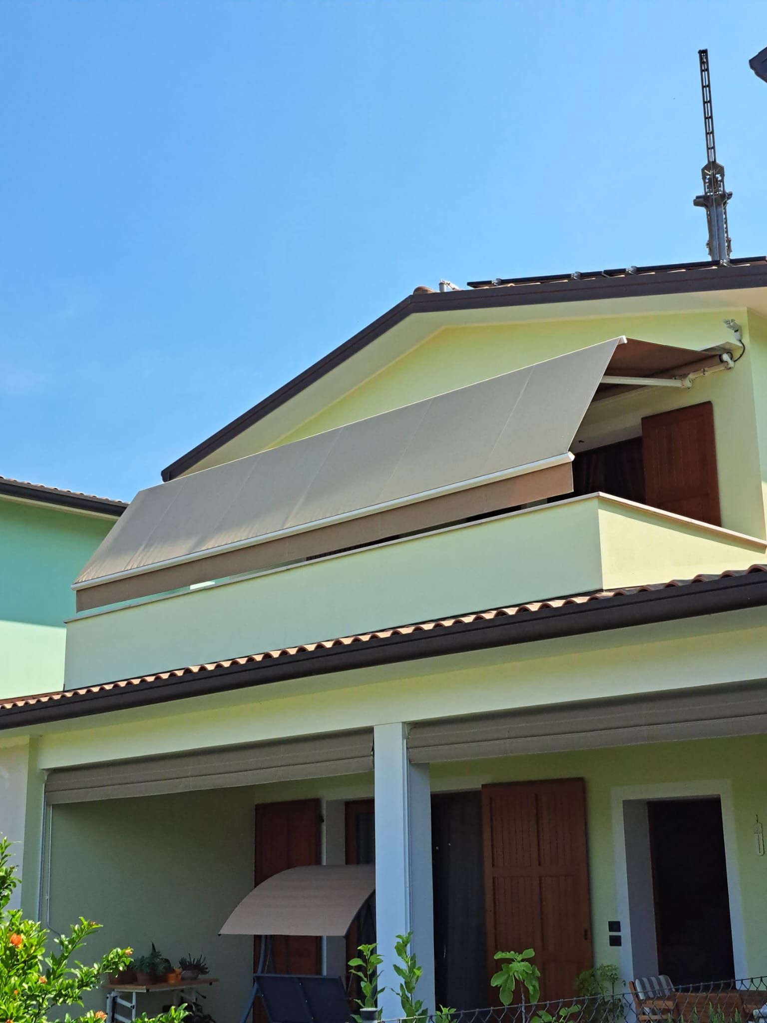 Sono perfette per la copertura di terrazzi, attici, verande e balconi. Hanno una forte tenuta alle intemperie grazie alla telaio di sostegno ed è possibile fare strutture a più campate col telo unico, con la calata fino a terra.