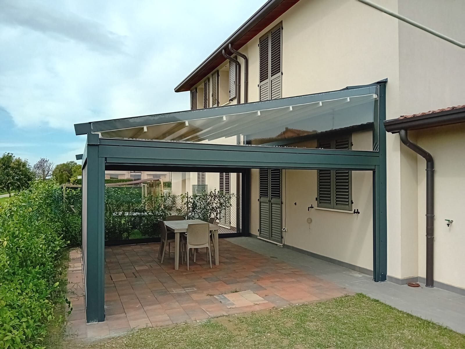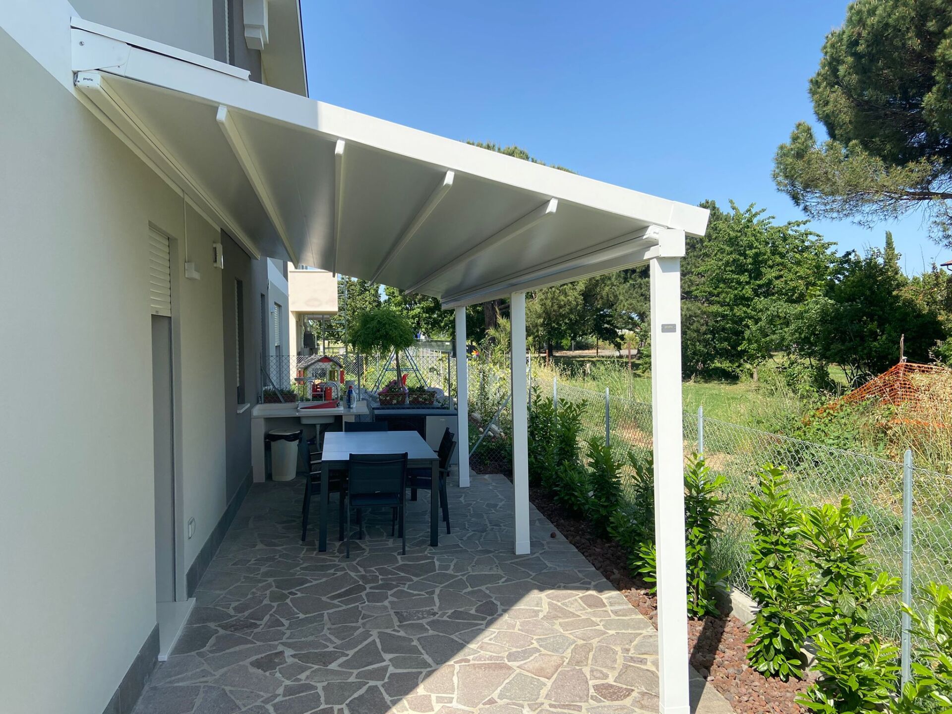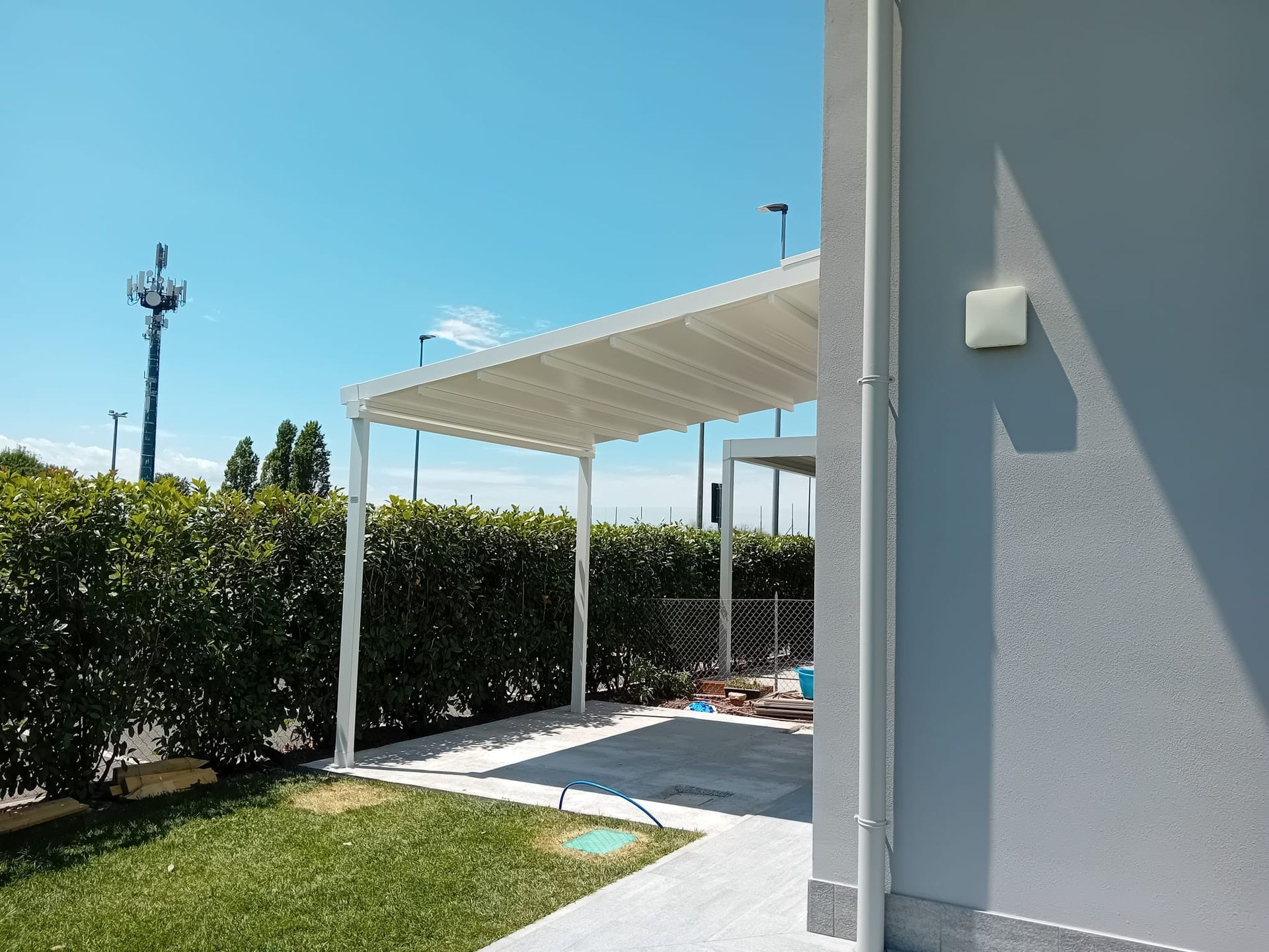 Le pergole a copertura fissa offrono una protezione permanente per gli spazi esterni, ideale per chi cerca una soluzione a bassa manutenzione. Sono strutture massicce in acciaio zincato e verniciato e possono avere il tetto fisso in pvc, in pannelli di policarbonato o in vetro.