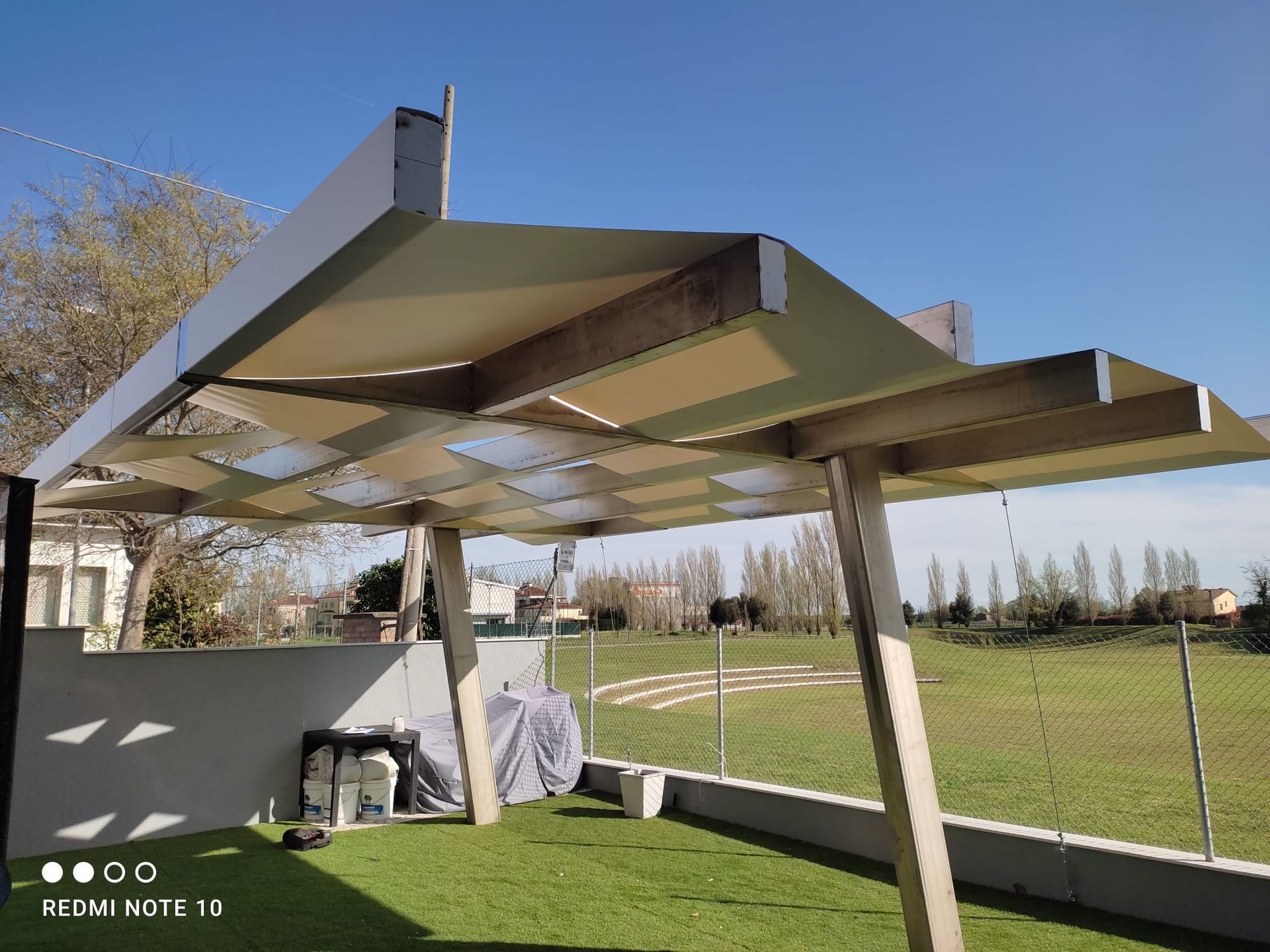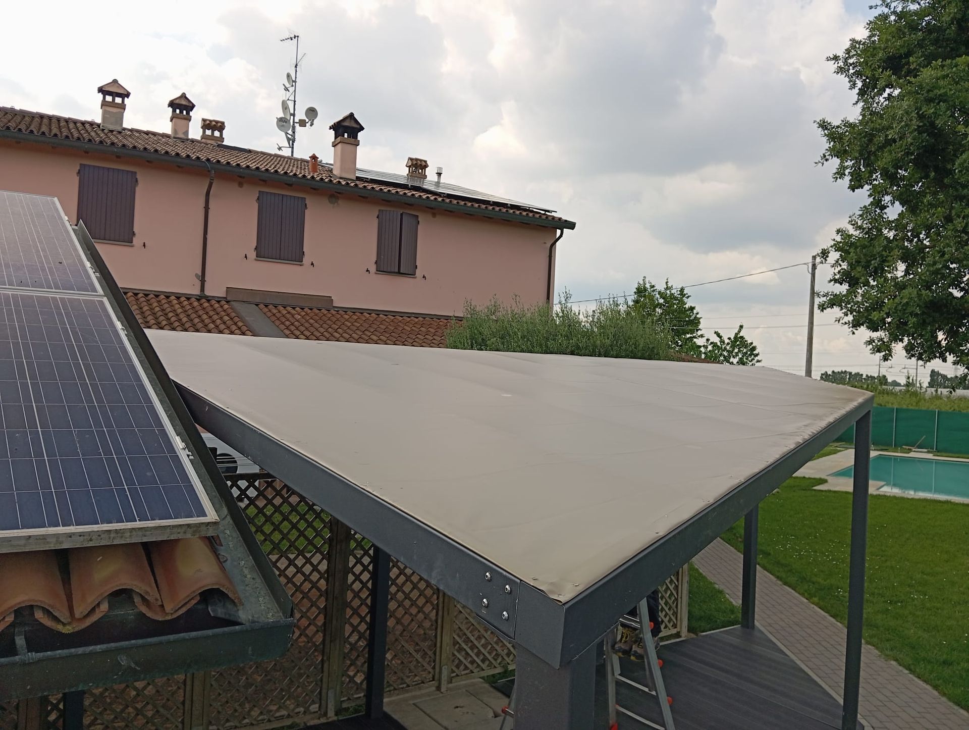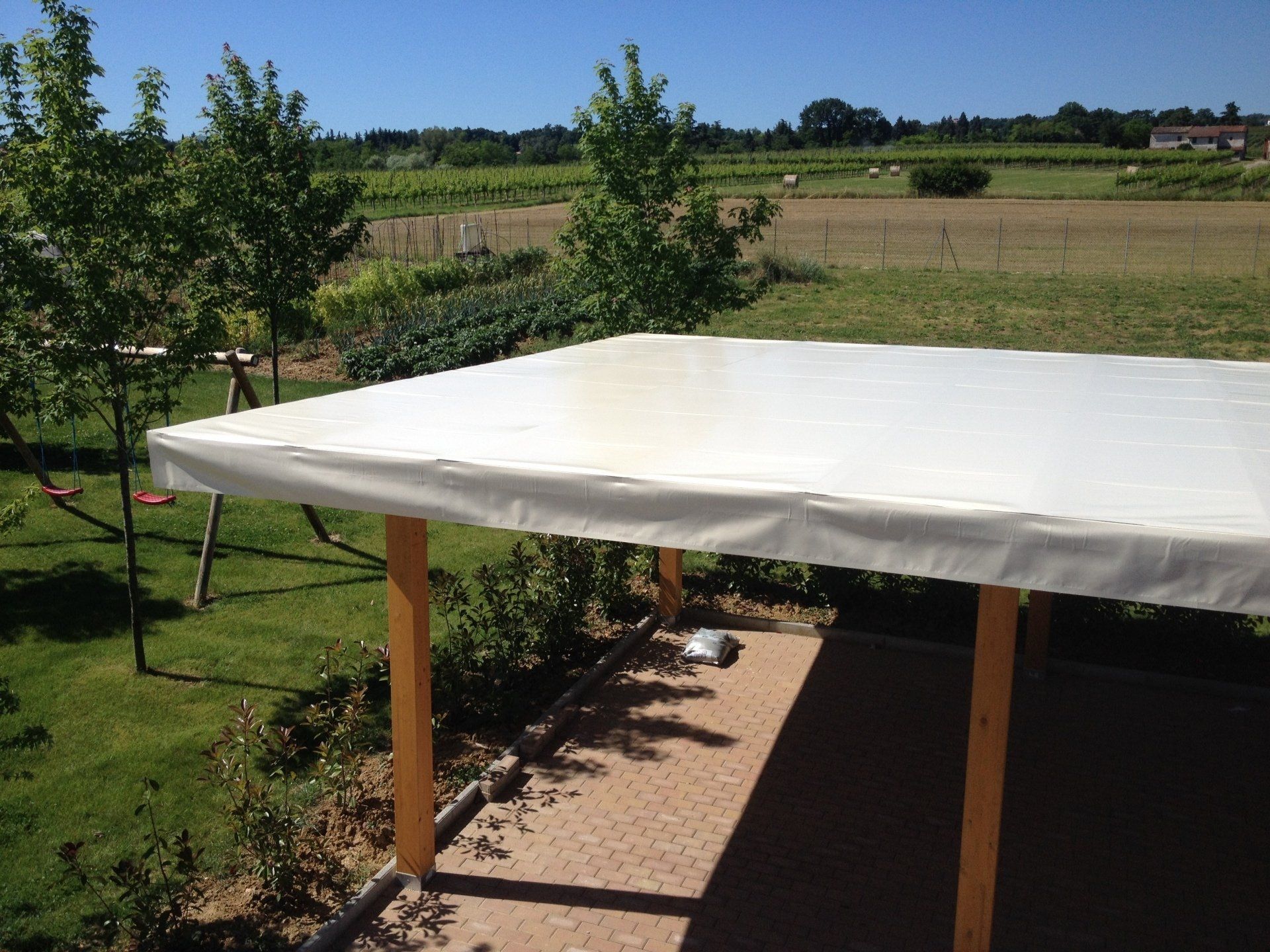 Realizziamo e montiamo teli di copertura per tettoie in legno e in ferro.